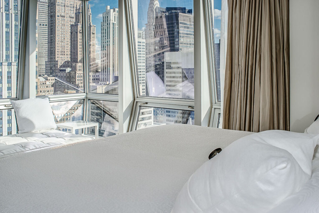 The views of Times Square with west facing views to the Hudson River makes it unique.