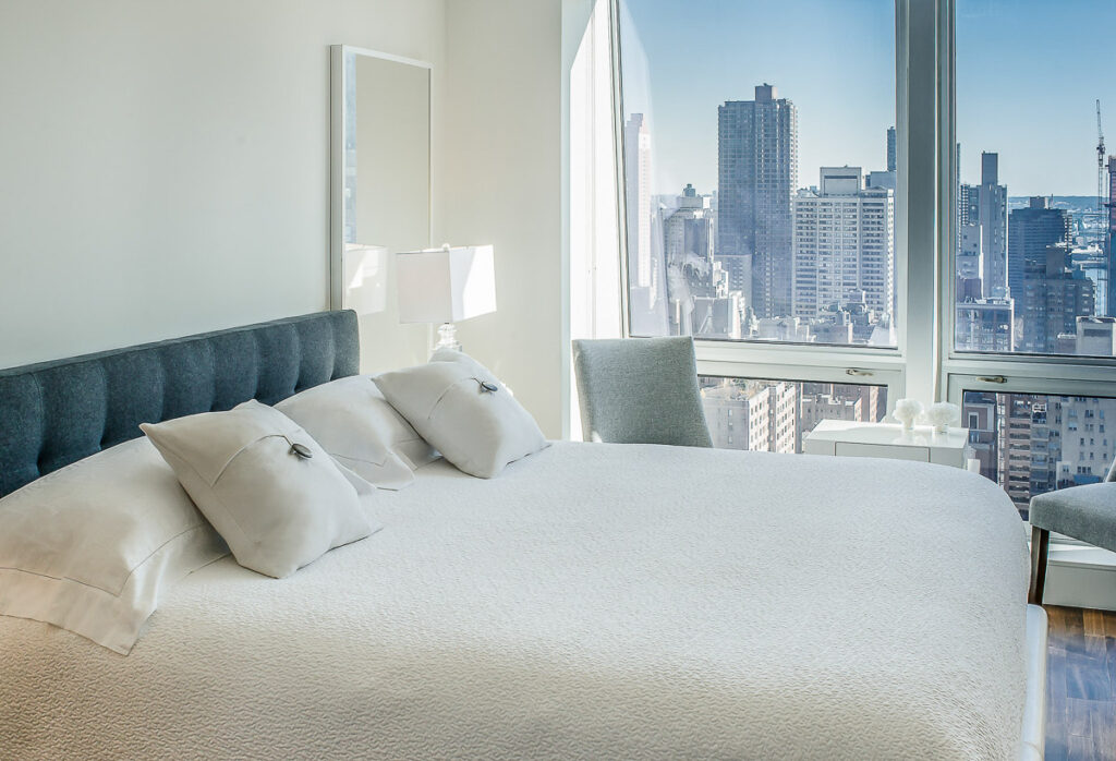 Soaring 60 stories high, this magnificent building offers mesmerising views of the Manhattan Skyline through a series of floor to ceiling windows which enhance the light, space and view from your room.