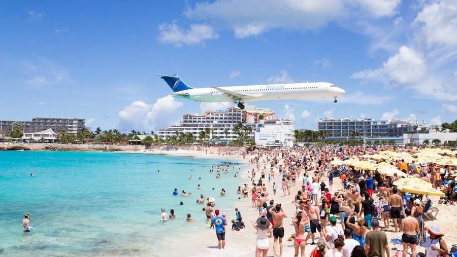 Finally, we conclude with one of the most famous attractions on the island of Saint Martin: Maho beach. If you think of a typical tropical beach all peace and serenity you are wrong. It is exactly the opposite: the beach on the Dutch side of the island is known for being flown over at very low altitude by airliners that fly so close to the ground that tourists risk being sent into the water by the power of the reactors. Princess Juliana International Airport is not only close to the beach, it also has an unusually short runway of only 2,180 meters.