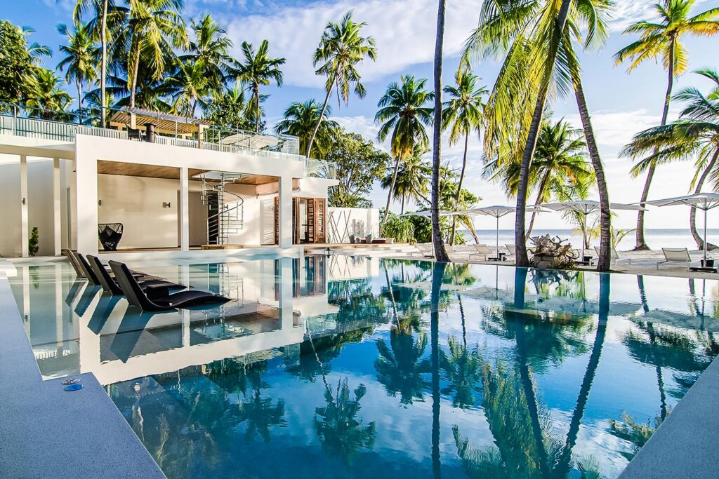 Every Friday we pick a wonderful unique Beachfront villa where to spend your next vacation.  Everybody has that vision of perfection, that magical  place unobstructed by the practical concerns of living like a bulletin board or storage closet full of winter coats. The interior is thoughtfully planned and executed to a tee. Outside, you might find a wraparound porch, or imposing palm trees brushing against grand windows.