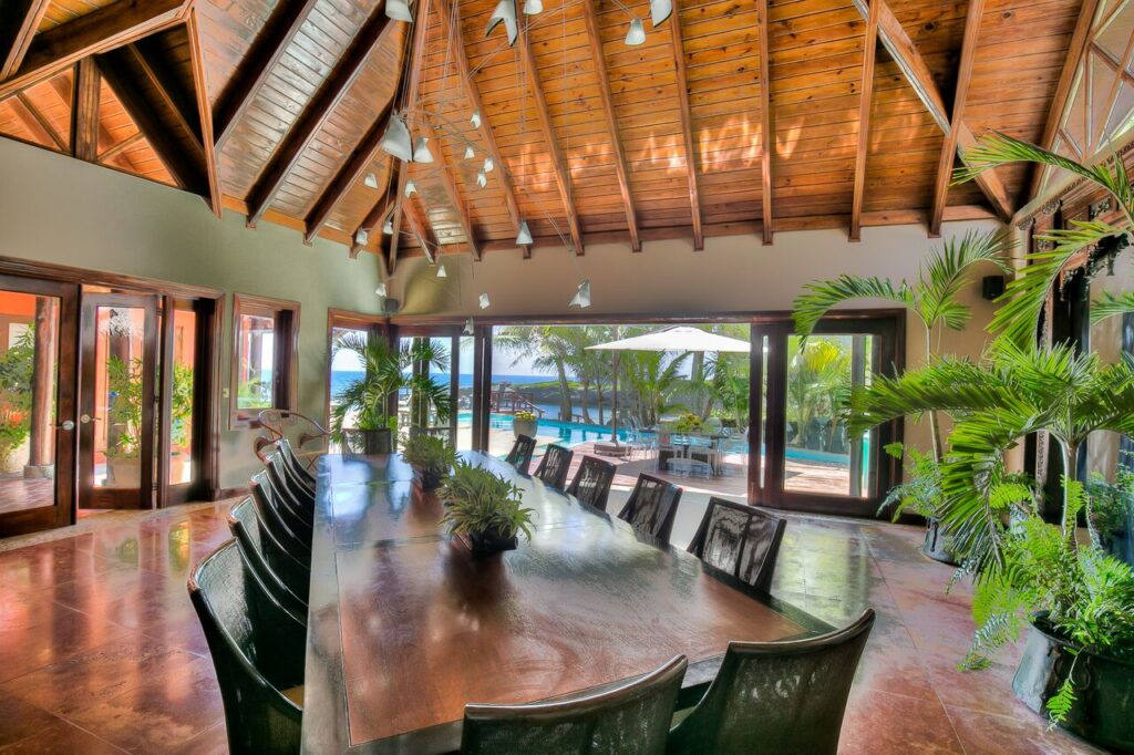 Los Corales 28 has been designed with soaring wood ceilings emphasizing the feeling of interior area. The formal dining space opens onto an alfresco dining area with a wood deck that seems to float higher than the pool. Your every need is catered to by the in-house butler: this is a very luxurious experience!