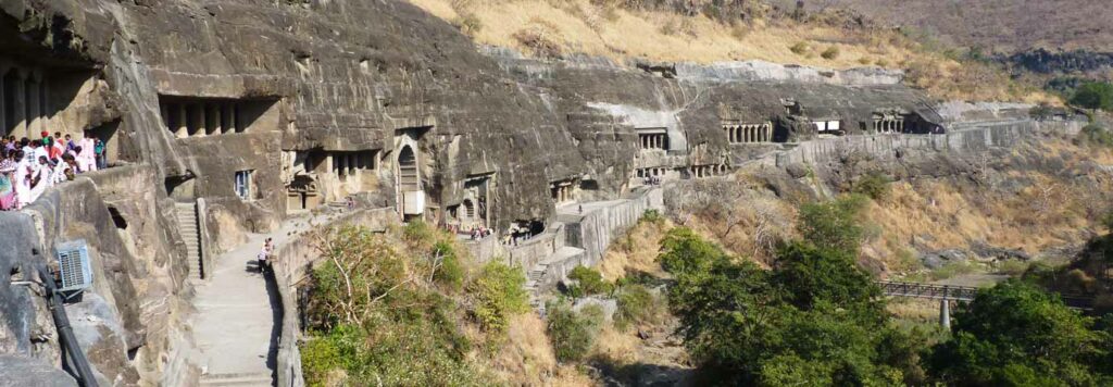 Earlier tourist used to walk from Ajanta Viewpoint to the caves but due to few wild animals sighted around in the walking path in the past few years. This route is not used any more.