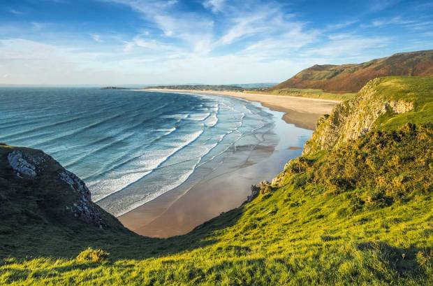 Rhossili, located at the end of the Gower Peninsula, is always the best beach in Europe or one of the ten most beautiful beaches in the world. The sand here extends for more than 4 kilometers, the waves are perfect for surfing and the green cliffs overlooking the sea remind the typical Australian landscapes. This romantic bay inspired the great Welsh poet Dylan Thomas (Dylan Thomas), perfect for enjoying picturesque sunsets or long walks along the coast. With the low tide on the cliff, you can see the remains of the Helvetia, which sank in 1887.