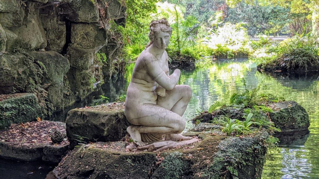 Inside the park we find: Margherita’s Fountain; swimming pool and dolphin fountain; Aeolus pool and fountain; Ceres pool and fountain; Cascatelle and the Fountain of Venus and Adonis and the Fountain of Diana and Atteone, dominated by the Great Waterfall.